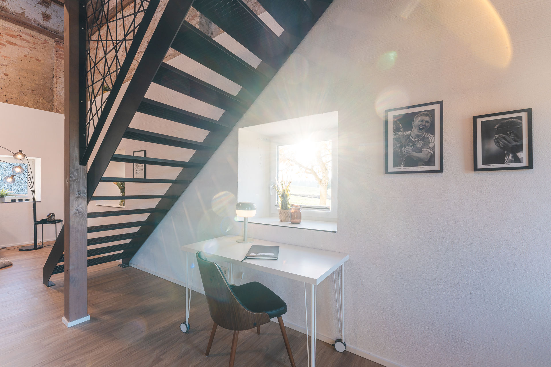 Unsere Ferienwohnung, einst der Stall des alten Bauernhauses, vereint den Charme des historischen Gemäuers mit der Eleganz einer modernen Galerie. Vom Sitzfenster aus hat man einen herrlichen Blick in die Natur. Ein Zuhause wie ein Atelier – perfekt, um sich inspirieren zu lassen und zu entspannen.